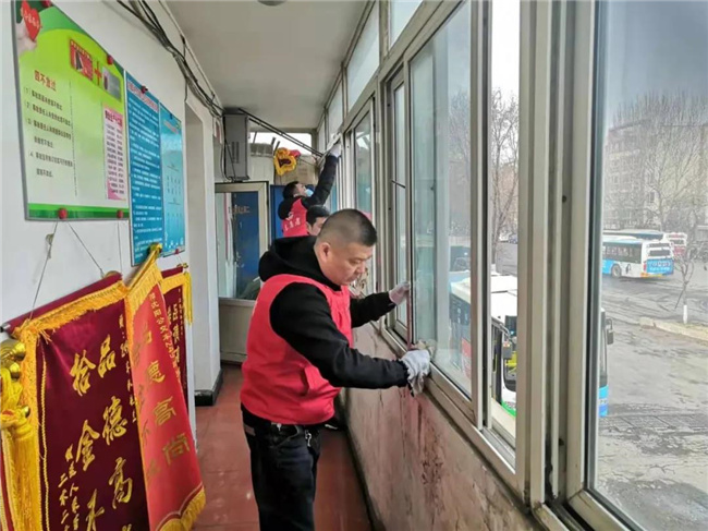 近日,132路隊長張鐵豐帶領(lǐng)駕駛員們對工貿(mào)學(xué)校終點站的候車?yán)冗M(jìn)行衛(wèi)生打掃。大家分工合作,對候車?yán)鹊姆鍪?、站牌、地面進(jìn)行清潔打掃,同時為問路的乘客提供幫助。在隊長和駕駛員共同努力下,候車?yán)刃l(wèi)生整潔一新。