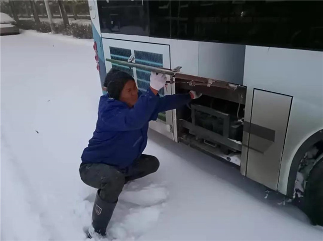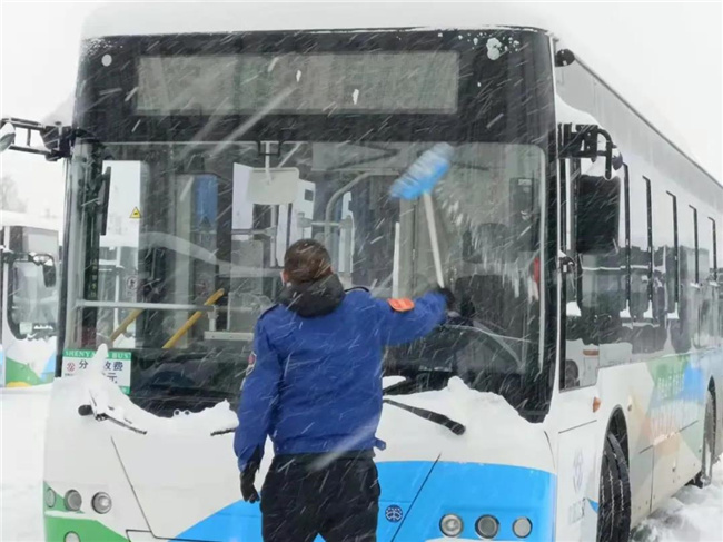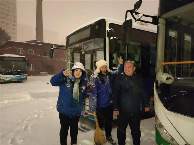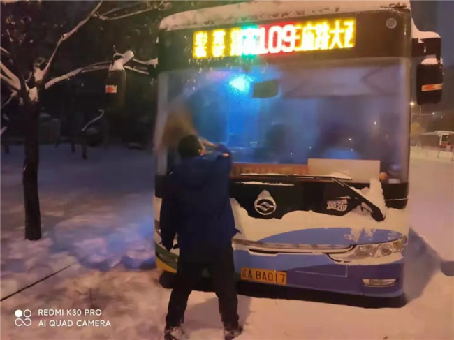 凌晨4點(diǎn)多,第一班車(chē)的駕駛員就已經(jīng)提前到崗,清掃積雪,預(yù)熱車(chē)輛...