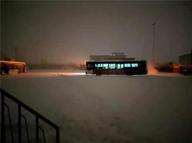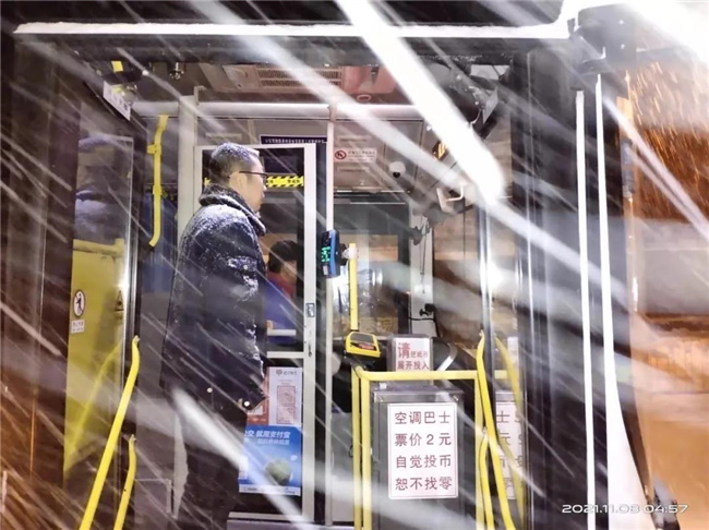 迎著風(fēng)雪,首班車(chē)順利發(fā)車(chē)
