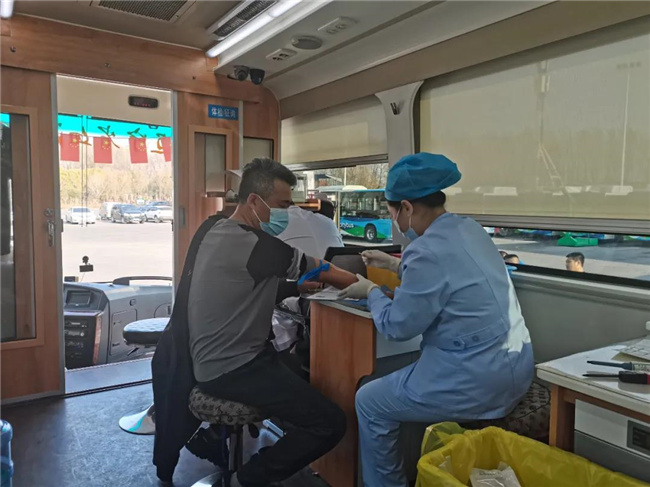 11月2日上午,沈陽市衛(wèi)生健康委員會的工作人員來到鑫暢公司,為參加獻血的職工依次進行信息登記、血液檢測、靜脈采血。經(jīng)檢測有十一名職工符合獻血要求,他們中有第一次參加獻血的“新人”,也有參加過多次獻血的“老人”。參與獻血的同志們紛紛表示為自己的行動能給需要的人提供幫助、挽救更多的生命而感到高興。