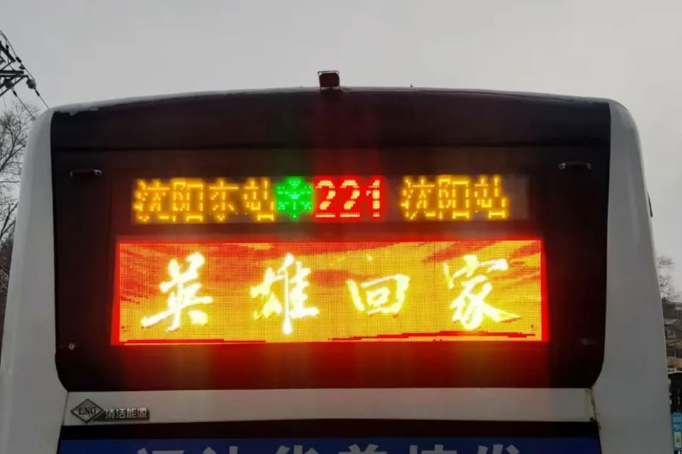 11月26日,雪后的沈陽(yáng)青年大街主色調(diào)變成了紅色——沿線各類戶外電子屏幕、廣告看板、公交車(chē)候車(chē)亭,都打出了“致敬英雄 銘記英雄...
