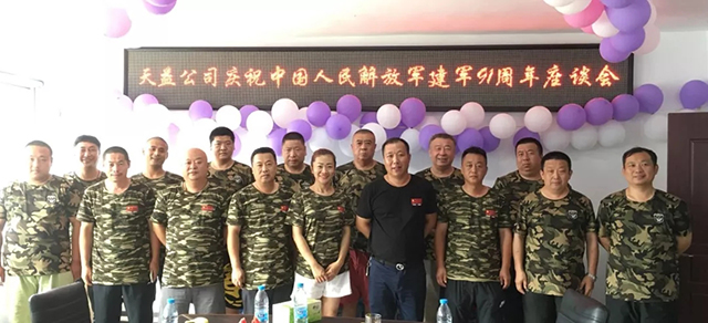 2018年“八一”是中國(guó)人民解放軍建軍91周年紀(jì)念日。在節(jié)日來(lái)臨前夕,天益公司召開(kāi)慶祝中國(guó)人民解放軍建軍91周年座談會(huì)。