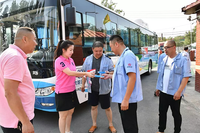 今年,我們又迎來了今年的高溫季節(jié),為做好防暑降溫工作,確保一線職工平安度夏,集團(tuán)機(jī)關(guān)開展了“送清涼”活動(dòng),集團(tuán)公司領(lǐng)導(dǎo)班子、集團(tuán)公司機(jī)關(guān)各部室負(fù)責(zé)人都積極的參與到了本次活動(dòng)中,為奮戰(zhàn)在一線的駕駛員和職工送去了絲絲涼意,獻(xiàn)上了一份誠(chéng)摯的關(guān)懷。