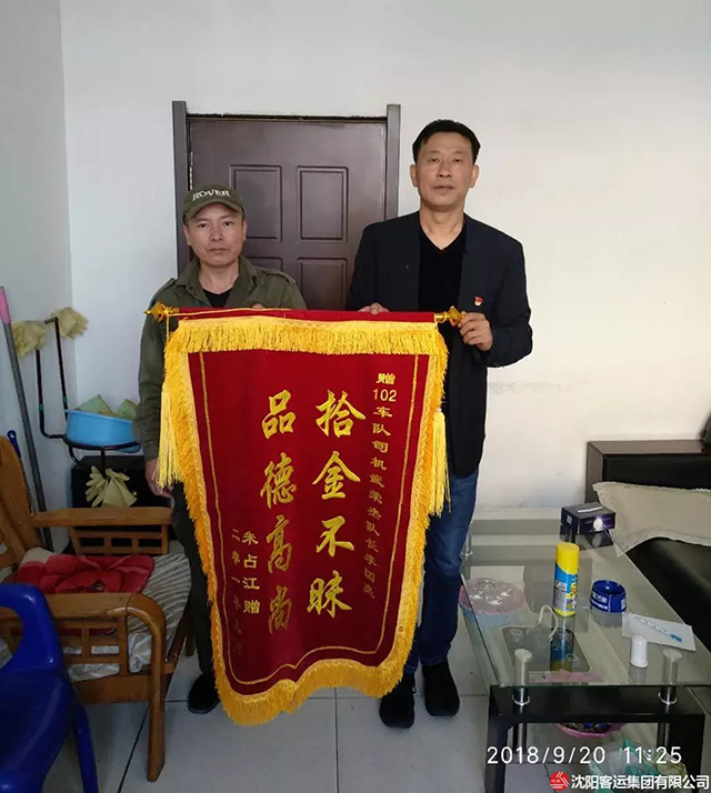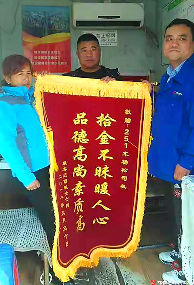 9月29日,康利公司251車隊(duì)973車駕駛員楊松上午10點(diǎn)左右,從龍之夢方向開往站西廣場到終點(diǎn)時(shí)拾到了一個(gè)背包,他馬上交給了車隊(duì),在查找包內(nèi)證件時(shí)發(fā)現(xiàn)有一萬元現(xiàn)金。經(jīng)過多方聯(lián)系終于找到了失主。次日,為了表達(dá)自己的感激之情,失主王女士送來了錦旗。