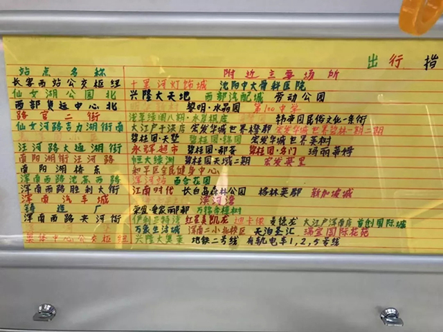這張手繪的換乘圖是吳桐丞在平時的工作中了解站點及街路信息、再利用下班時間上網(wǎng)搜索線路,整理了兩三天的成果,這張圖清晰的標注著公交線路每個站點附近的主要場所及換乘路線,為了讓乘客清晰辨認,還特意采用了不同色彩的筆來描繪。這張圖被發(fā)到網(wǎng)上,得到很多乘客的贊譽,稱“這是我見過最暖心的司機”。